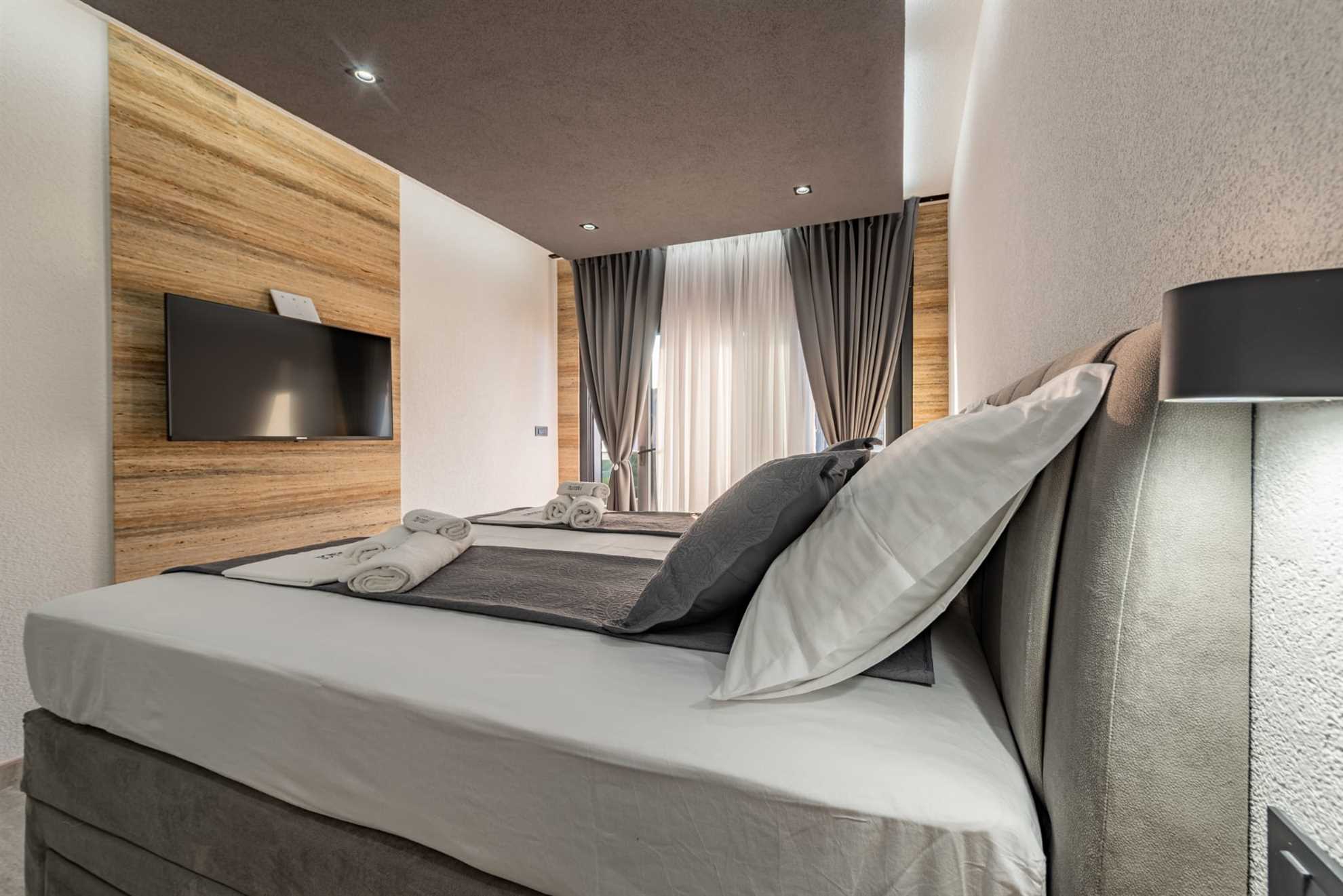 Spálňa 2 - vybavená manželskou posteľou , klimatizáciou, TV a vlastnou kúpeľňou so sprchovacím kútom.