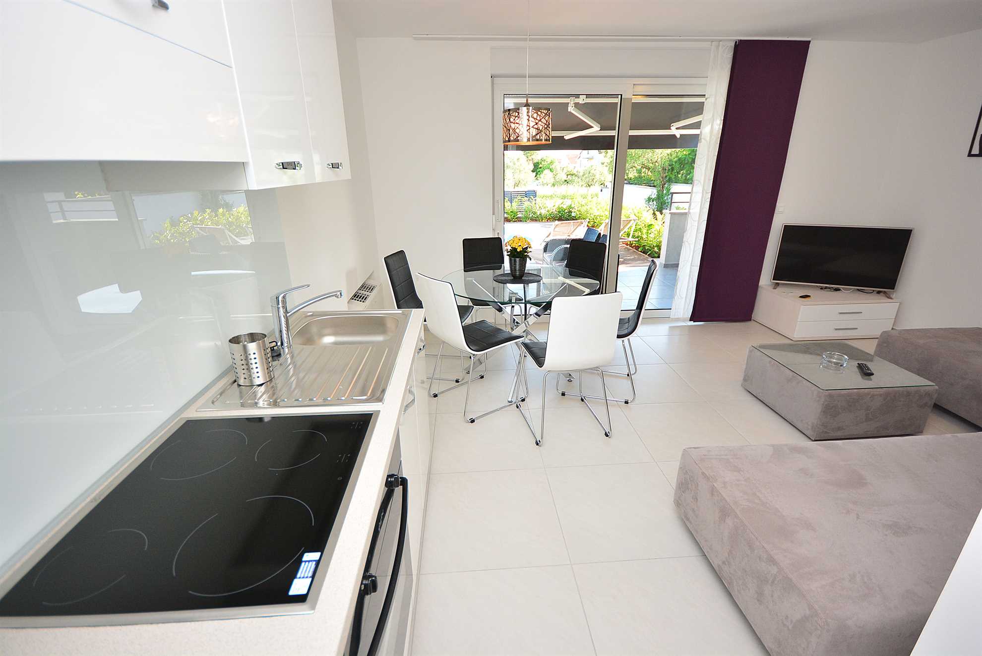 Nejbližší supermarket je 300 m od apartmánů, restaurace 260 m a café bar 290 m. Apartmány jsou vzdálené 230 m od přímořské promenády, podél které jsou pláže, ale také četná gastronomická a servisní místa.