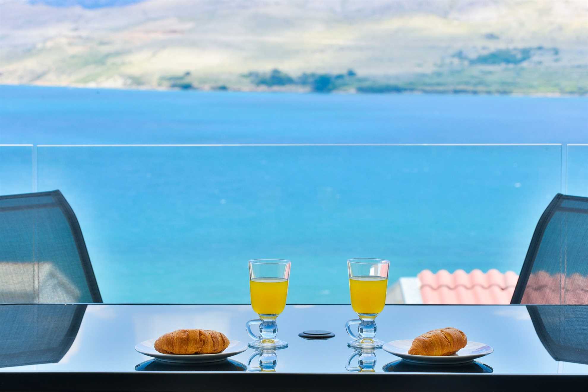 - osłoniety taras z panoramicznym widokiem na morze i góry